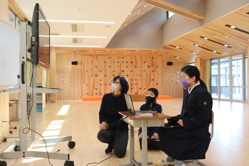 1年生が音楽でひな祭りを打楽器で演奏しています。残念ながら今は、歌え