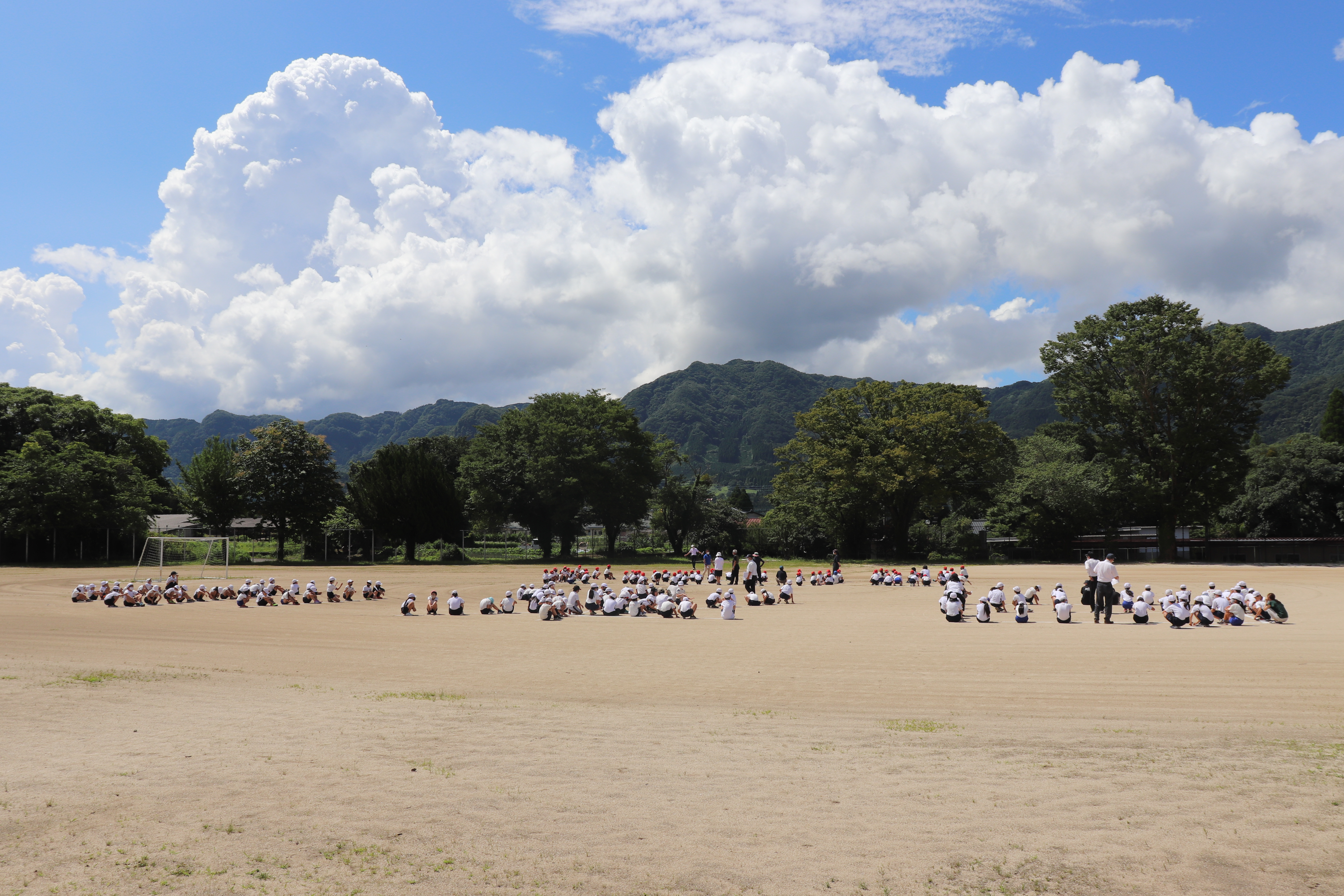 開校ということで、記念のために航空写真を撮影しました。「白水小2021」という人文字です。また、明日は全校写真やクラス写真を撮影します。暑い中でしたが、なんとか撮り終わり、出来上がりが楽しみです。保護者の皆様も購入可能とのことです。後日、ご案内します。