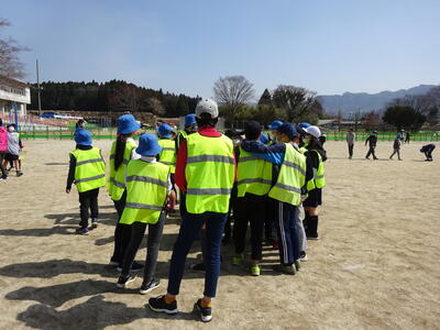 給食をしっかり食べた子どもたち。昼休みは、6年生が企画した全員遊びを楽しみました。
