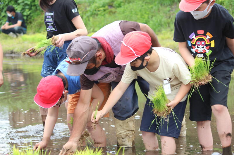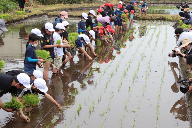今年度も後藤光浩さんの田んぼを借りて実施しました。後藤さんに植え方を教えていだきました。初めて体験する児童も半分くらいおり、貴重な体験となったと思います。