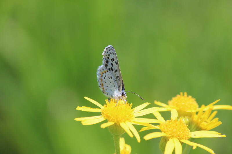 当日は天気も良く、気温もあまり高くならなかったので、とてもいい条件でした。しかし、風が強く、オオルリシジミもたくさんとんでいませんでした。それでも、オス、メスともに見ることができ、卵もありました。