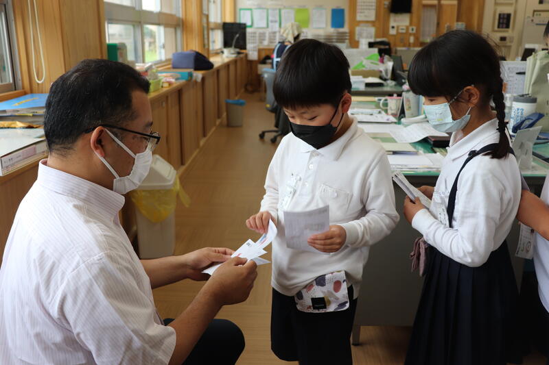 1年生が自己紹介のカードをくれました。全員が職員室に挨拶をしに来てくれ、その時に手作りの名刺をくれました。楽しく、かわいい名刺です。1年生の皆さんありがとうございました。