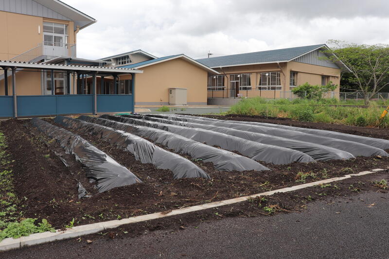 さて、そんな中、今年もいも苗を植えます。昨年度はいのししに食べられてしまい、全滅しました・・・。今年こそはと燃える2年生です。その準備のために、5月10日の晴れた日に、地域の後藤光浩さんに準備のご協力をしていただきました。立派なマルチが貼れました。地域の方のご協力あっての白水小学校です。今後ともよろしくお願いします。