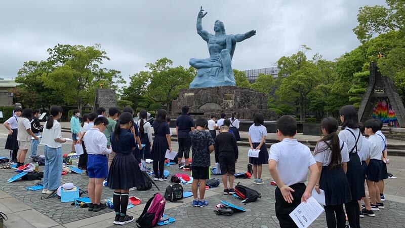 平和祈念公園に移動して、平和祈念像の前にて平和セレモニー。自分たちがこれまでの学習をとおして、平和について感じたことや考えたことを発表しました。