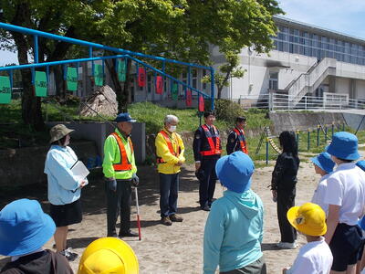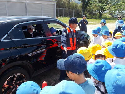 高森警察署から3名、地域の交通安全指導員の方2名を講師としてお招きし、交通安全教室を開催しました。今回は、主に横断歩道の歩き方と、ドライバーからは死角になって見えない部分があるので、車の周りでは遊ばないこと等をおしえていただきました。交通安全に気をつけて、自分の命は自分で守ってほしいと願っています。