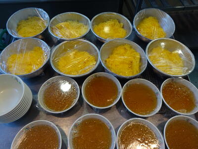 また、給食の定番「タイピーエン」も、とっても人気があります。具のうま味がスープに溶け出して、ツルツルとした春雨と一緒に、アッという間に完食したようです。