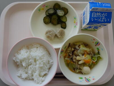 今日は、『味の旅めぐり~長崎県~』で、「ごはん、牛乳、八宝菜、肥後シューマイ、きゅうりのカリカリづけ」でした。具だくさんの八宝菜は、野菜から出る水分を考えながらお店の味に近づくように仕上げていきました。八宝菜の具の中で、うずらの卵が子どもたちには人気でした!