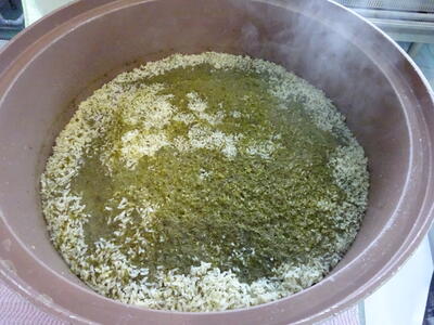 今日は、粉茶を入れて炊飯した茶飯(2枚目の写真)、サラ玉ちゃんドレッシングで和えたサラダを作りました。また、海の幸が豊かな地域と言うことで、つみれ、わかめ、かつおフライを組み合わせました。茶飯は食べやすいようにゆかりごはんの素といりごまを混ぜて作りました。お茶の香りがふわっとしてきました。