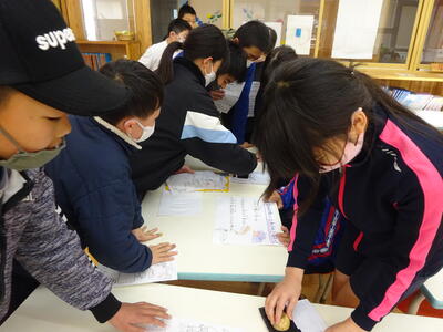 昼休みに、給食委員会主催の『食育スタンプラリー』を実施しました。まずは、1~3年生の児童がチャレンジしました。難しいクイズだったので、次の日の給食時間に解説をしました。