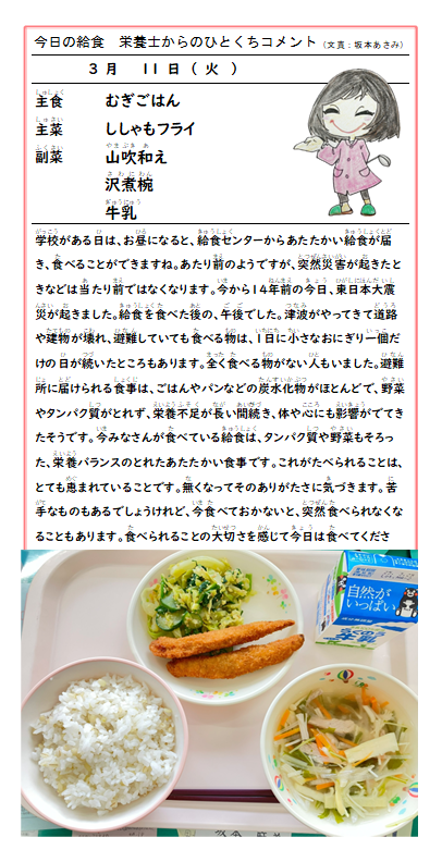 今日が令和6年度最後の給食でした。