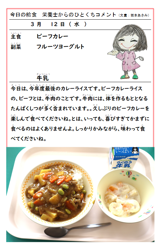 1年間、おいしい給食ありがとうございました。