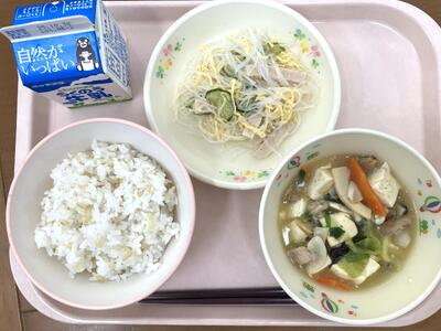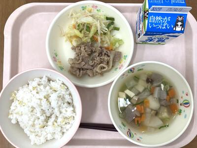 クイズです。ちゃんぽんは、どこの県の料理でしょう?ヒントは6年生が修学旅行で行くところです。わかりましたか?答えは長崎県です。明治時代、長崎の中華料理店の店主が、中国人留学生に栄養があっておなかいっぱいになる料理を食べさせたくて作ったのがちゃんぽんのはじまりです。ちゃんぽんという名前の由来は、簡単な料理という意味の中国語「シャンポン」がなまったとか、ポルトガル語の混ぜるという意味の言葉がなまってできた、などいろいろな説があるようです。給食のちゃんぽんも、お肉、魚介類、たっぷり野菜と栄養がたっぷりですよ。あさり貝も食べてくださいね。