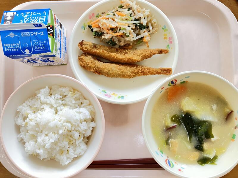 一足早いクリスマスメニューです。楽しみにしていた人も多いでしょう。食事をするとき、栄養バランスも大切ですが、楽しく食べることも大切です。楽しい気分で食べると、味もおいしく感じられます。するとちょっとにがてなものでも不思議とパクパク食べられます。また、胃や腸の働きも良くなるので、どんどん消化されて、栄養が体にどんどん入っていきます。給食は友だちや先生と楽しく食べられる場所です。楽しい会話をしながらみんなで楽しく食べてもらえると、作った私たちもうれしいです。