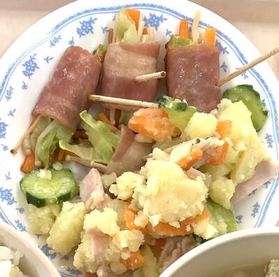 給食終わり5分前の放送で、「今日ぼくはれんこんのソテーがおいしかったです」と!すると、他の先生方からも「これおいしい!」とたくさんの声。私としては意外な反応でしたが、よかったです♪