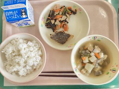今日のピーナッツ和えには、小松菜といっしょに、白水小の畑でとれたほうれん草が少し入っています。秋に種をまいて育てていたのですが、寒くて全然大きくなりませんでした。先月少しあたたかくなったときにぐんぐん伸びて、ようやく育ちました。それを昨日、コスモス3組の5年生が収穫してくれました。茎は細いけど、やわらかくておいしいほうれんそうです。食べてくださいね。また、団子汁のだんごは、月足さん、古澤さんが全身を使ってこねてくださいました!きつかったと思います。こちらもぜひ食べてくださいね