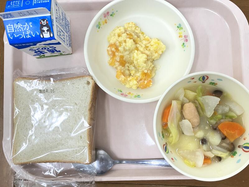 10年前の今日、熊本地震が起きました。南阿蘇村でも、家や道路が壊れ、大きな被害を受けました。支援物資がなかなか届かず、食べる物が足りなくて困ったそうですが、お互いに食べものを分け合って、助け合いながら、避難生活を乗り越えたそうです。災害が起こると、食べる物がなくて困ることがあります。その時になってようやくありがたさに気づくものです。いつもの生活では感じにくいですが,今日は、食べられることのありがたさを感じて食べてみませんか?