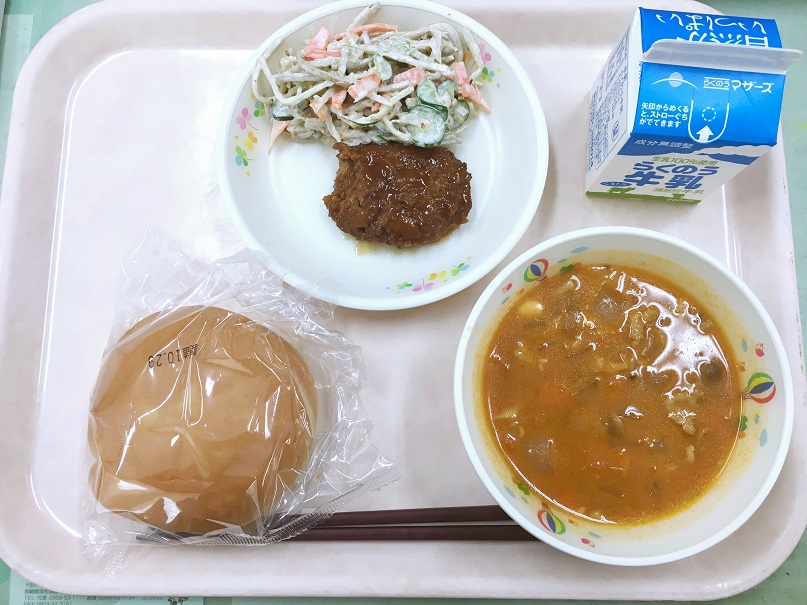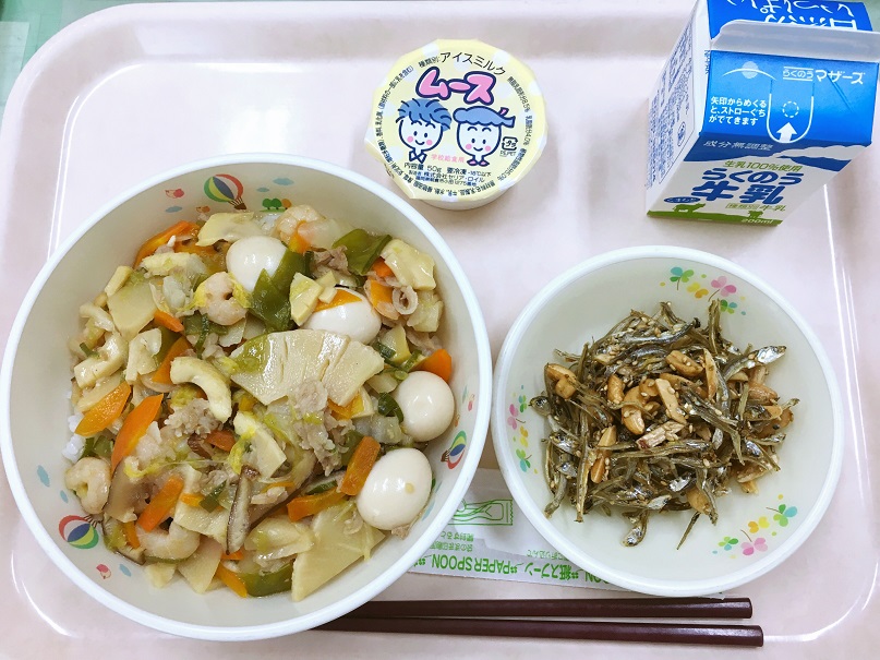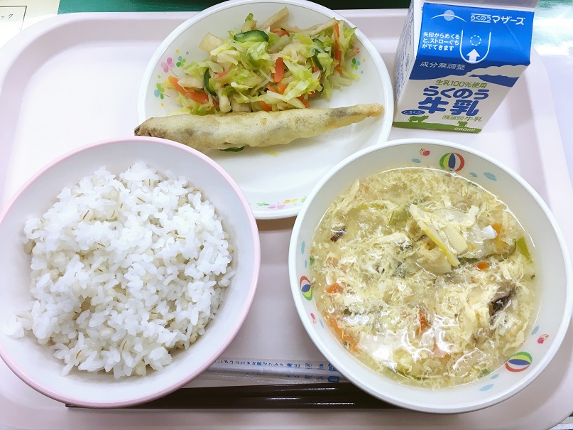 今日のスープは、えび団子とうずらの卵が入っていました。普段は、給食当番がつぎ分けていますが、低学年のクラスでは、学級担任がえび団子とうずらの卵を上手に調整されていました。「先生!うずらの卵が2個入っていました!」と、嬉しそうに報告してくれる児童がたくさんいました。先生方、上手につぎ分けていただき、ありがとうございます!