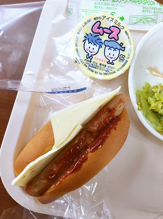 今日は、今年の干支の戌年にちなんで、セルフホットドッグを給食に取り入れました。ホットドッグという名前がついた理由は、犬のダックスフンドに似ているから・・・など、諸説あるようです。
