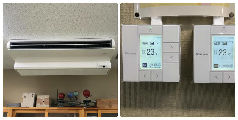 昨日の午前中までは、従来のボイラーを使った暖房器を使用していましたが、その重油も使い切り、新しいエアコンがとうとう動き出しました!