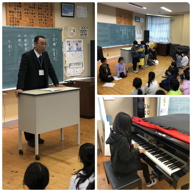 また、今年初めての校歌斉唱は、6年生の伴奏で歌う最後の校歌斉唱となりました。