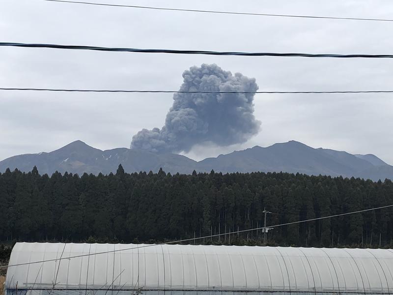 外を見てみると、なるほど、中岳から黒い噴煙がもくもくと出ています。
