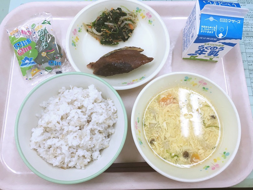 5日間のG.Wが終わり、久しぶりの給食でした。(私は、道の駅巡りをし、すいかの試食をたくさんしました♪)