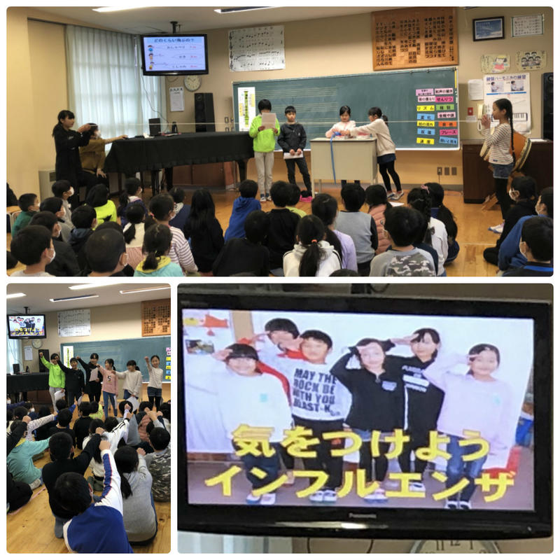 健康づくり委員会が「気をつけよう、インフルエンザ」と題して発表してくれました。