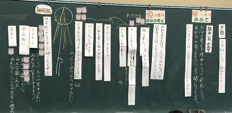 でも、今回の授業では、司会を中心に落ち着いて話合いができ、みんなでやることを決めるという目的が達成されました。
