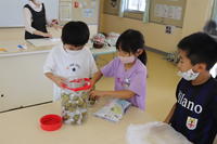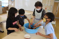 「おいしくできているかなあ?」と子どもたちの声。