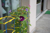 このところの雨のおかげか、1年生が育てているアサガオは、大きくカラフルな花を咲かせています。