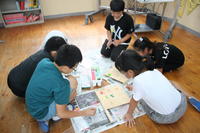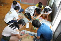 グループに分かれて、これまでの学習を振り返り、それぞれのおもいを言葉や絵で看板に描きました。