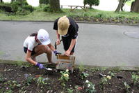 雨の合間を縫って、6年生のみんなで、白水小の花壇にたてました。