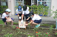 2年生が育てているミニトマトは、実をつけ、赤くなろう、おいしくなろうと頑張っているようです。