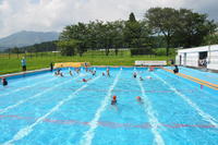 子どもたちは、「どれだけ泳げるの?・・・距離を測る遠泳」と「昨日の自分に勝つ!・・・時間を計る25m自由形」の二種目に出場しました。