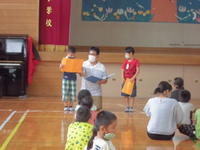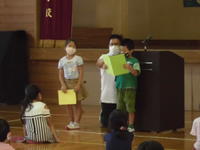 色々あった1学期でしたが、子どもたちの「1学期に頑張ったこと」の発表では、「算数を頑張りました」「マスクを着けることを頑張りました」「ひらがなを頑張りました」など、子どもたちのたくさんの頑張りを知ることができました。