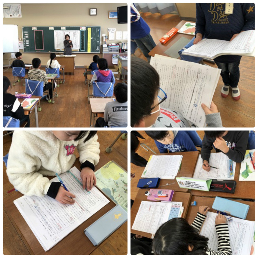3年生は国語の「きつつきの商売」「夕日がせなかをおしてくる」の音読と