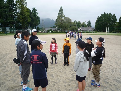 ランニングが終わると、すぐに縦割り班ごとに集合します。
