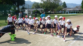 ピストルが鳴ると、低学年恒例のスタートダッシュ!