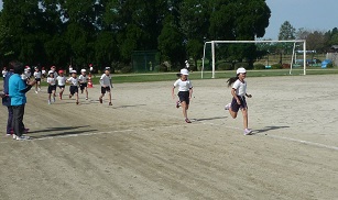 今日は小雨の中を1,2,3年生がコースを走りました。