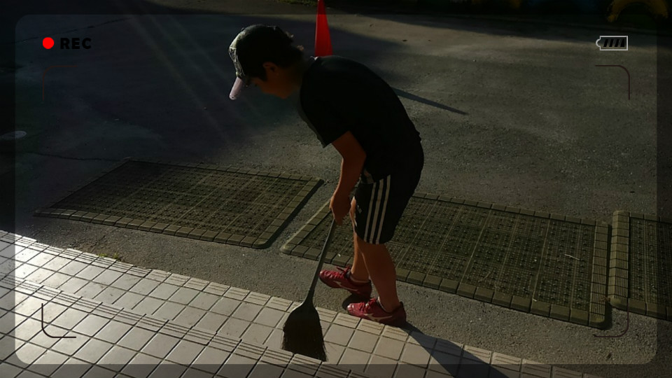 登校してくると、この子は毎日児童玄関の掃き掃除をします。