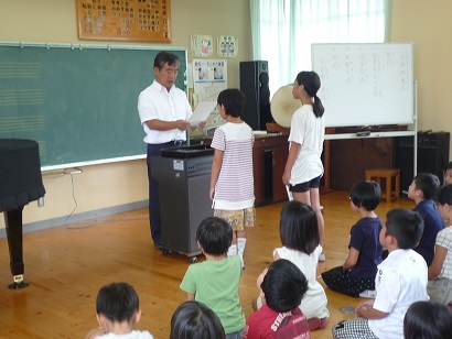 その後の校長の話では、夏休みに向けて2つのことを子どもたちと