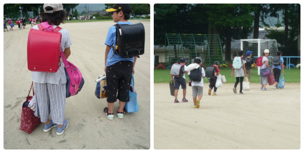 一斉下校では、毎度おなじみ夏休み前日にたくさんの荷物を持って