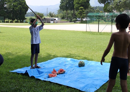 一刀両断する子、地面をたたいて手を痛める子、笑いが絶えませんでした。