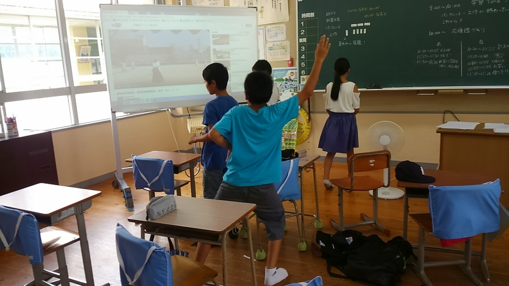 暑~い教室で、汗びっしょりになって懸命に踊る子どもたちです。