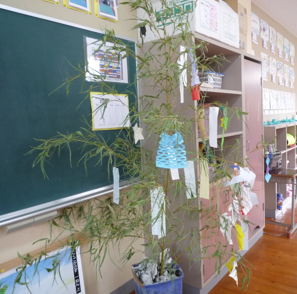 1年生の教室には、七夕かざりがお目見えしました。