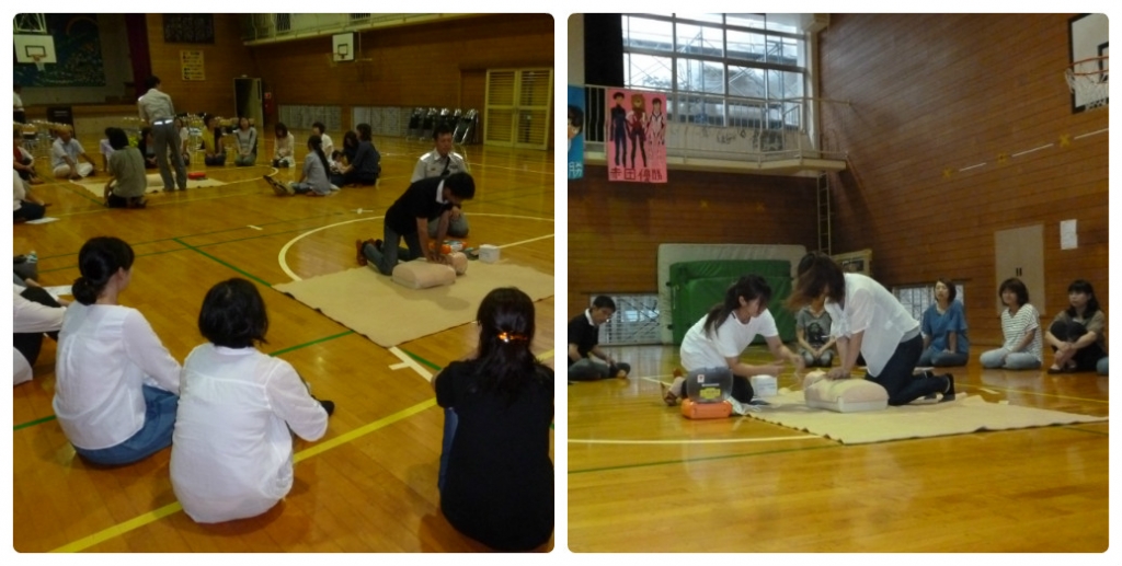 毎年この時期の授業参観の日に救急救命蘇生法の講習会を行っています。