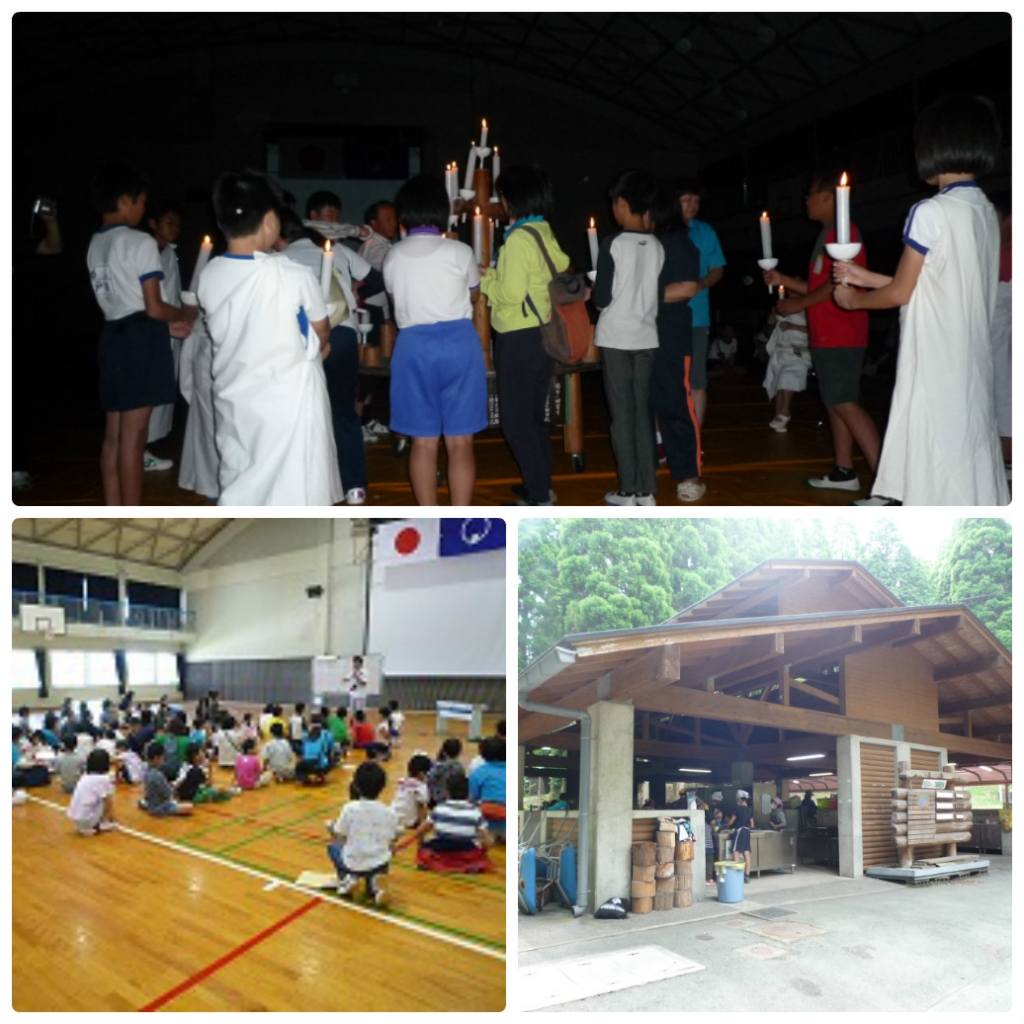 1日目はオリエンテーリングやキャンドルサービス(写真上)、