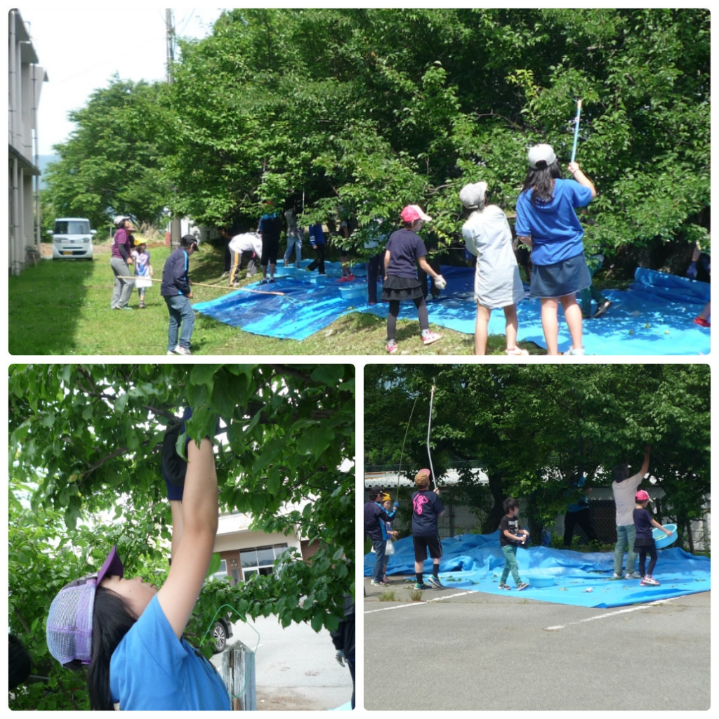 さて、水曜日は3年生以上で梅の実の収穫をしました。