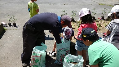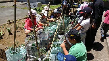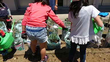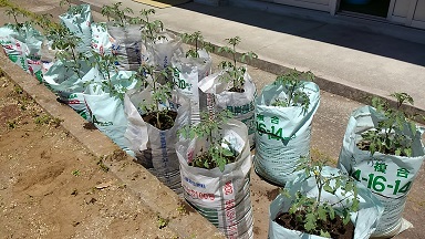 2年生が生活科でミニトマトの苗を植えました。