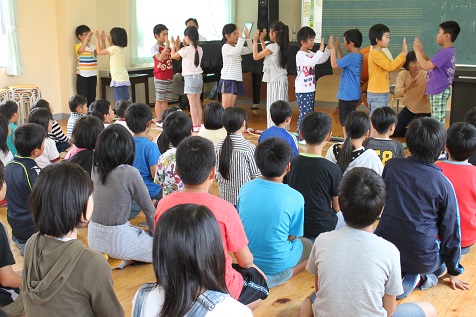 次に「茶つみ」を手遊びを入れて歌いました。どの演奏も、3年生みんなの